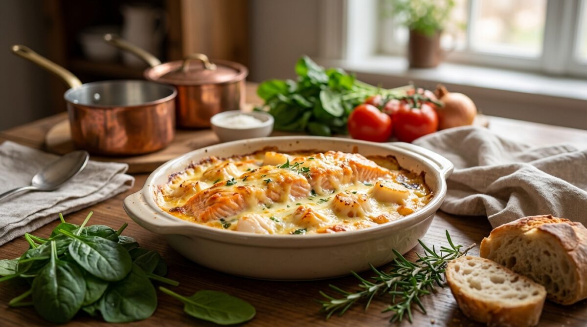 Ce gratin peut être servi lors d’un repas festif sans nécessiter de préparation complexe au dernier moment. Il se prépare en amont, se réchauffe facilement et conserve une structure homogène après cuisson. Les saveurs marines restent équilibrées par la douceur de la sauce et des épinards. En maîtrisant la cuisson séparée des éléments et l’humidité des légumes, on obtient un plat fiable, reproductible et adapté aussi bien à un dîner soigné qu’à une grande table familiale.